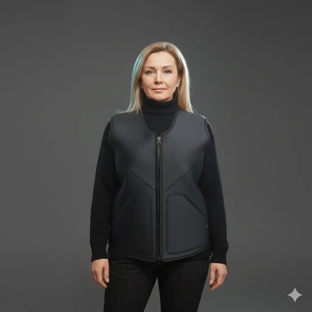 A designed for women 50+ warming vest provides natural heat retention to support circulation, joint comfort, and daily movement. Using advanced neoprene instead of batteries, it delivers safe, steady warmth that feels gentle on aging bodies and is suitable for all-day wear.